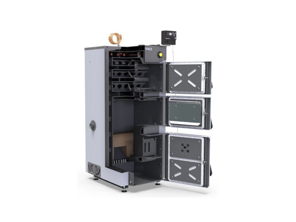 Kotel je osazen ovládací elektronickou jednotkou, která řídí oběhové čerpadlo, požadovanou teplotu kotle a ovládá i spalinový ventilátor.