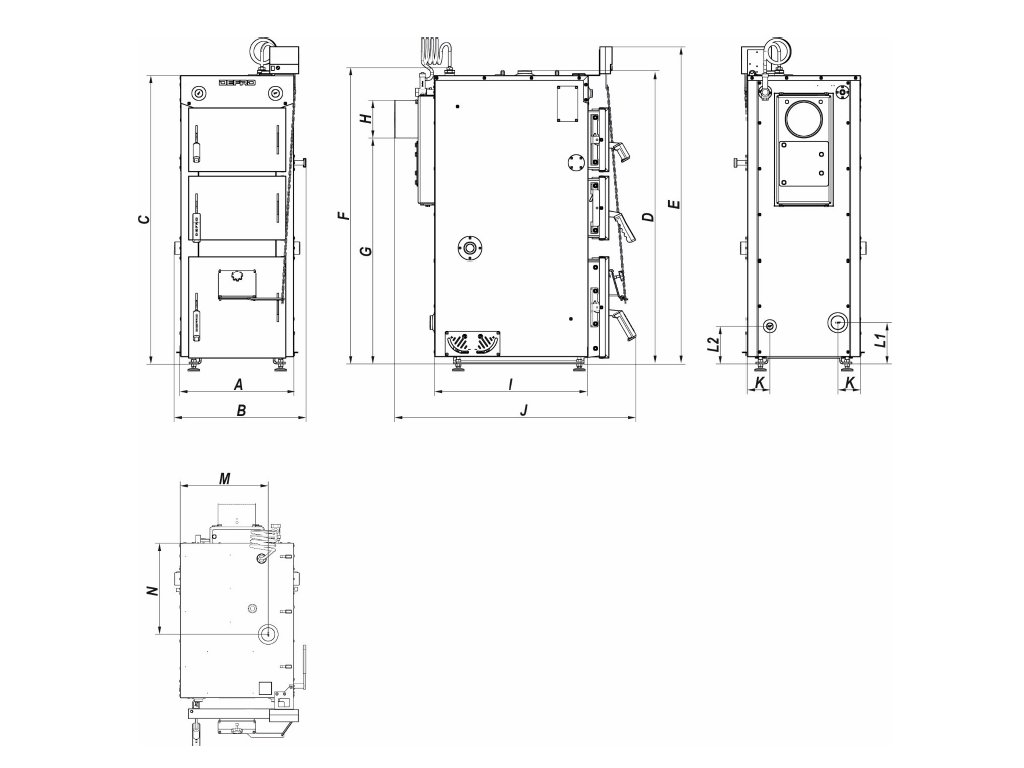Kotel se přizpůsobí doslova každé kotelně. Má minimální nároky na prostor. Otevírání dvířek, bypass můžete jednoduše přemontovat, pokud vám nastavení z výroby nevyhovuje. Sekundární přívod vzduchu a průhledítka jsou umístěné po obou bocích kotle. Díky této variabilitě váš kotel můžete umístit v kotelně libovolně dle vašich potřeb vlevo nebo vpravo.