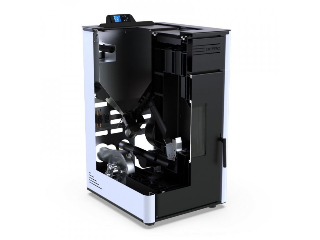 Teplovodní peletová kamna DEFRO HOME AQUAPELL standardní provedení korpusu je v černé barvě, možnost za příplatek jiné barevné varianty korpusu. Standardním vybavením je elektronický ovladač. Díky dokonalému zpracování a použití těch nejlepších materiálů budou peletová kamna jistě fungovat v moderním interiéru. Díky zabudovanému podavači a použitému ovládání vyžadují minimum práce a nasazení. Práce s kamny spočívá v používání dotykového panelu, na kterém se nastavují provozní režimy. Ovladač má velmi intuitivní menu, díky kterému je obsluha celého zařízení velmi snadná.