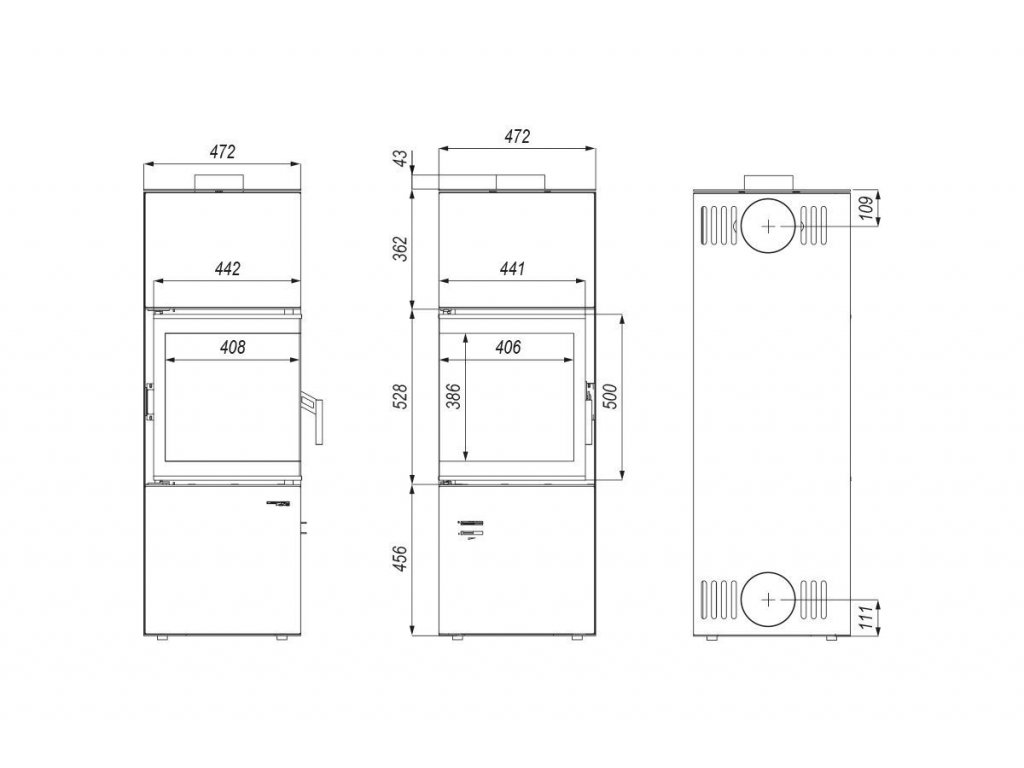 - centrální přívod vzduchu možno napojit ze zadní nebo spodní části kamen