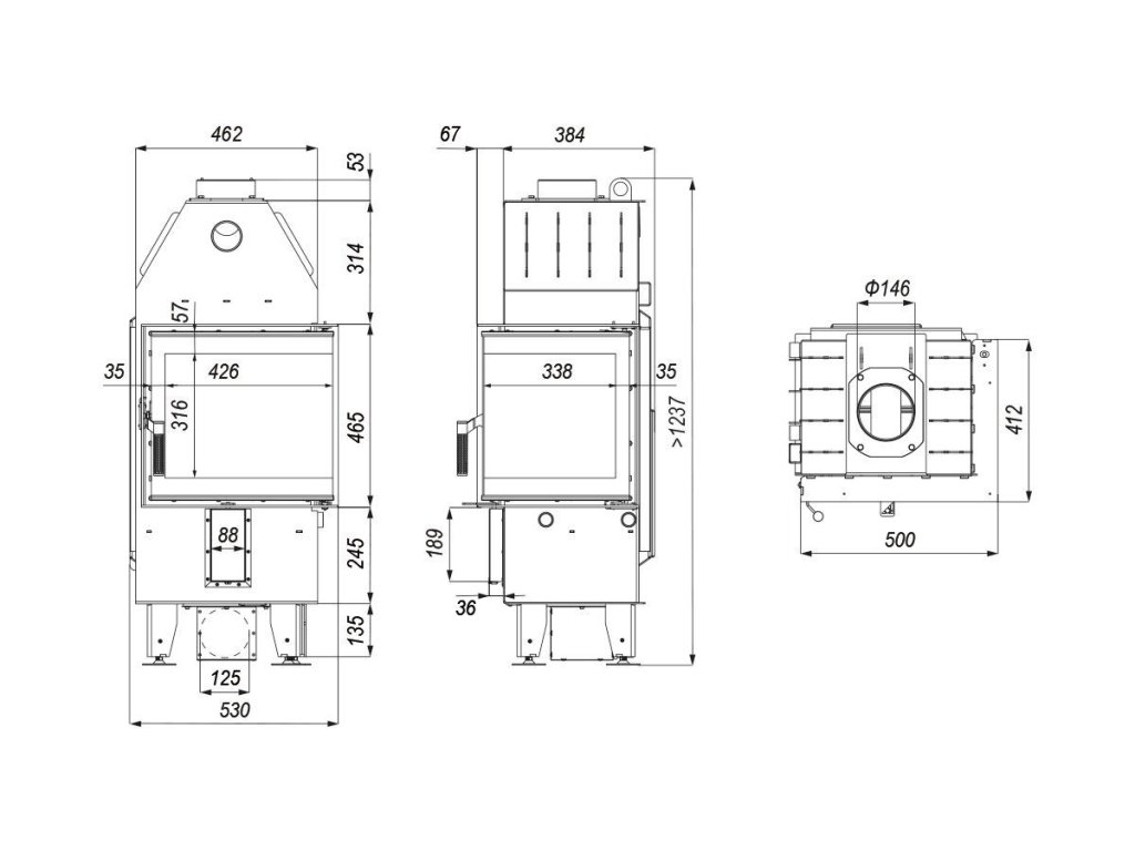 Tato vložka je určena pro konvekční i akumulační provoz – hypokaust. Centrální přívod vzduchu – speciální box umožní připojení hadice přívodního vzduchu k vložce s možností napojení ze strany. Propracovaný systém oplachu skla. Multiflow – patentované řešení dodávání vzduchu pro spalování. Black line – sklo s černým potiskem. Topeniště z masivního akumulačního materiálu vyztužené speciálními ocelovými drátky. Studená rukojeť – vyrobeno z nerezové oceli nejvyšší kvality, speciální perforace rukojeti umožňuje přirozené ochlazování rukojeti. Systém trubkových průduchů – průduchy navyšují efektivitu krbové vložky.