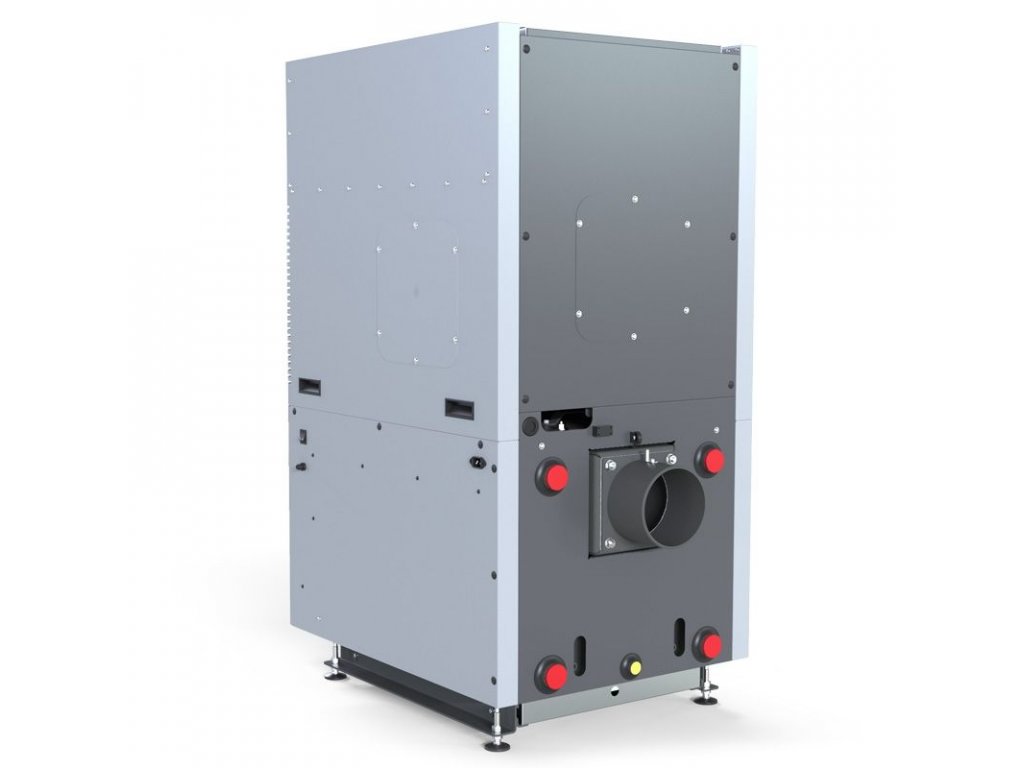 • Zásobník na pelety integrovaný s kotlem, umístěný přímo nad tělesem kotle. Toto řešení umožňuje umístění zařízení v malých kotelnách.